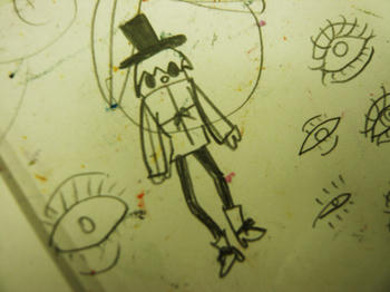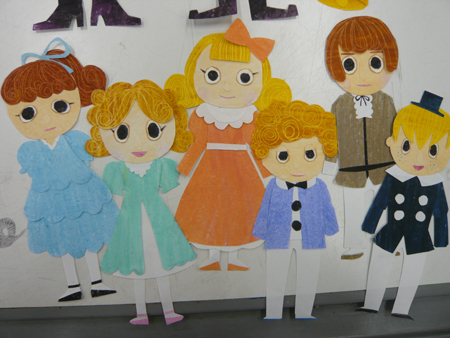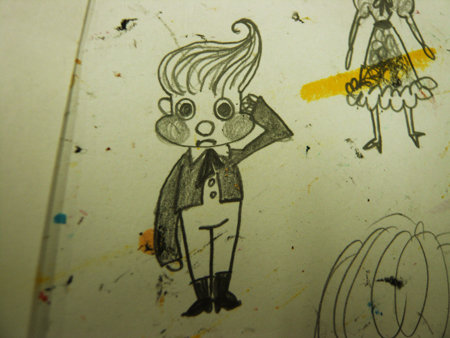 4人で作業を分担し制作しているのですが、私は美術担当で、キャラクターやら背景やら小物やらをクレヨンで描いてつくっています。