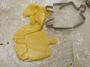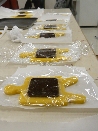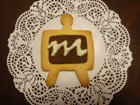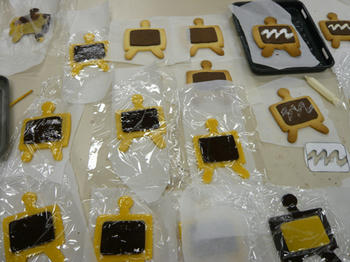 3年生で集まり、メディア造形でおなじみメディア君型クッキーを焼きました。