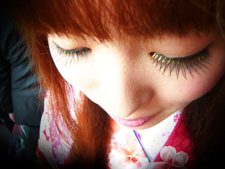 昨日は卒業式で。100均でつけまつげつくって、卒業式いどみました。